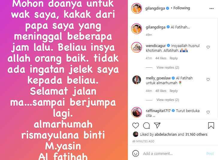 Gilang Dirga belakangan menjadi perbincangan lantaran disebut meninggal dunia.