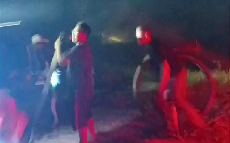 Hal tidak menyenangkan dialami relawan pemadam kebakaran saat hendak memadamkan kebakaran hutan dan lahan (karhutla) di Desa Gudang Tengah, Kecamatan Sungai Tabuk, Kabupaten Banjar, Kalimantan Selatan (Kalsel), pada Kamis (12/10/2023) malam.
