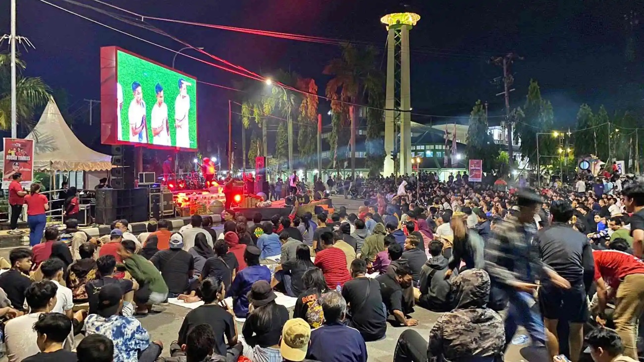 Kericuhan terjadi dalam acara nonton bareng semifinal Piala Asia U 23 di Rest Area Tuban Abirama, Kabupaten Tuban, Senin (29/04/2024) malam.