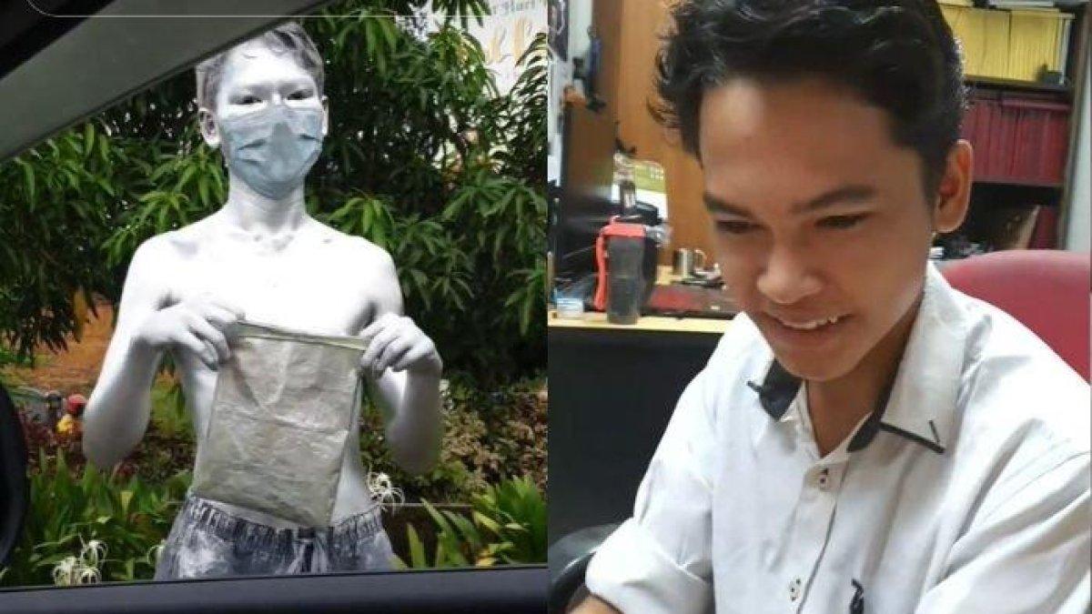 Kisah seorang manusia silver viral di media sosial karena mendapatkan pekerjaan dari pengendara yang lewat saat dirinya berdiri di pinggir jalan.