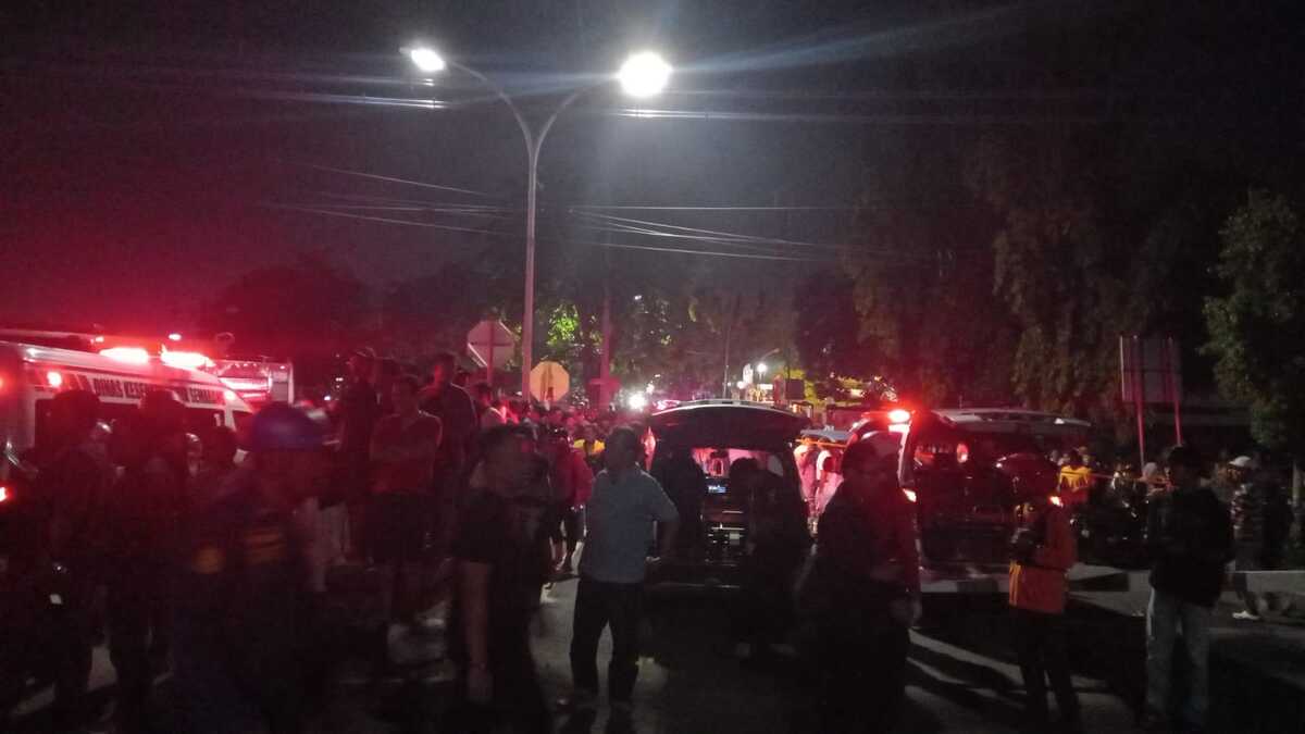 Truk kontainer tersangkut dan menimpa minibus di Talang, Jalan KS Tubun, Kecamatan Bogor Utara, Kota Bogor. Pengemudi minibus dilaporkan terluka dalam kejadian ini.