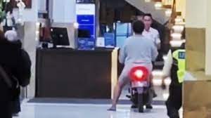 Seorang pengendara sepeda motor nekat masuk ke dalam Stasiun Tugu, Yogyakarta. Laki laki itu tampak menaiki sepeda motornya dan berbicara dengan petugas di stasiun.